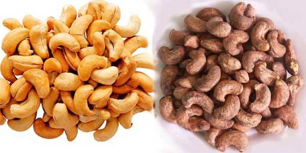 hạt điều vỏ lụa và tách vỏ